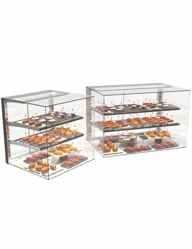 Neutral udstillingsmontre med tempereret glas, 2 hylder og LED belysning
