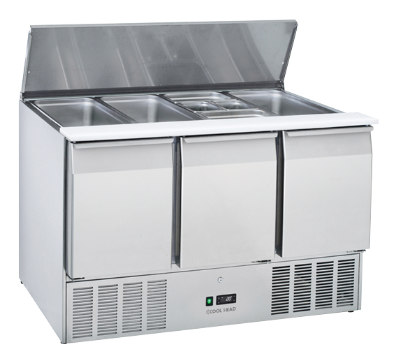 Ren og essentiel udseende, denne model med åben top og rustfrit stål beskyttelse er perfekt til at spare plads og tilbyde en kølet arbejdsstation i ethvert professionelt køkken.