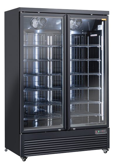 En opretstående fryser med et rent udseende. Monteret med opvarmet glasdør med dobbelt sikkerhedshærdet glas.