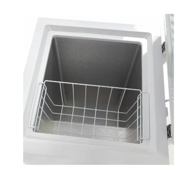 Denne kompakte kummefryser på 93 liter er en praktisk løsning til restauranter, caféer, kantiner eller mindre køkkener med behov for ekstra fryseplads. Fryseren har LED-belysning i låget, så du nemt kan se indholdet, når den åbnes, samt en hængende kurv, der gør det lettere at organisere mindre frostvarer.
