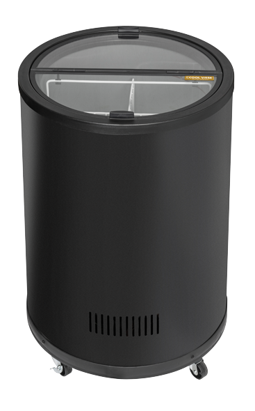 Denne tøndefryser i cylindrisk form, er både praktisk og holdbar. Modellen er nem at flytte takket være de 3 hjul.