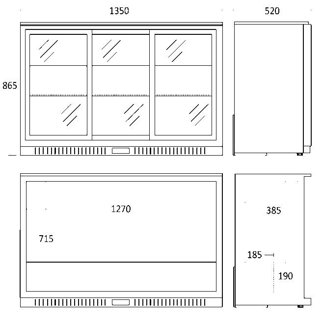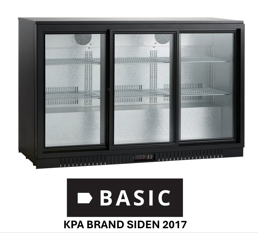 Backbar til café, restaurant eller natklub.KC312S er et 3-dørs køleskab, med et 254 liter kølerum. Skabet er under 90 centimeter høj, med glasdør ogvarmeudblæsning i front, hvilket gør KC312S særligt velegnet til indbygning under disk eller bar. Back barer erogså oplagte som minibar til hoteller. Køleskabet har mulighed for at køle ned til en temperatur mellem 0-10 °C.Døren lukker automatisk hvilket altid minimerer temperaturstigninger. Energibesparende LED belysning itop/front giver et godt lys og repræsenterer varerne flot.