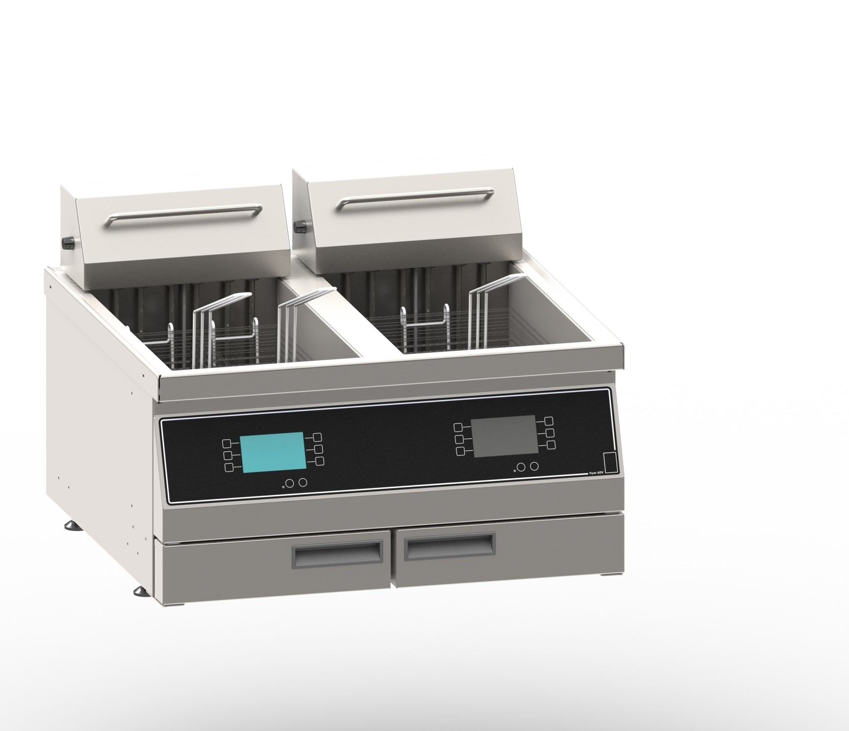 Frituren har en touchskærm, til nem og intuitiv programmering, og der er ligeledes trykknapper til start/stop samt enkelt betjening af maskinen under drift.