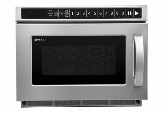 Let aflæst touch kontrolpanel med trykknapper og digitalt display, der viser tid og effekt.