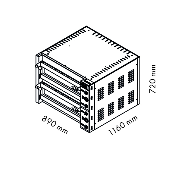 Der er plads til 12x Ø32 pizzaer, 6 pizzaer pr. kammer