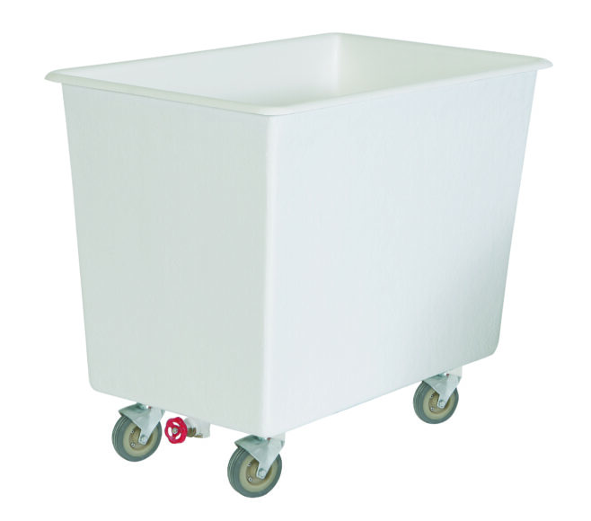 Glasfiber vogn på hjul, som nemt og uden vandspild fragter dit våde tøj, når du distribuerer dit tøj fra vaskeproces til tørreproces. Hjul og aftapningshane af vand er standard.