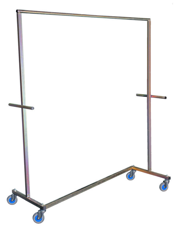 Når du har dampet eller renset flere jakkesæt eller kjoler, skal du selvfølgelig have en måde, at fragte dem fra A til B. Det kan du på en nem og hurtig måde med dette rullestativ, som er Z-formet og dermed stabil når tøjet svinger en smule under kørslen.