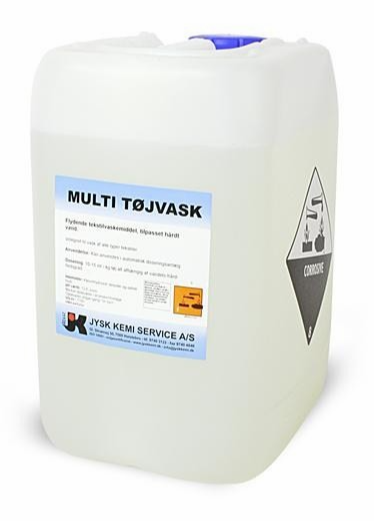 Multi Tøjvask er et flydende universalt tøjvaskemiddel, der er tilpasset hårdt vand.
