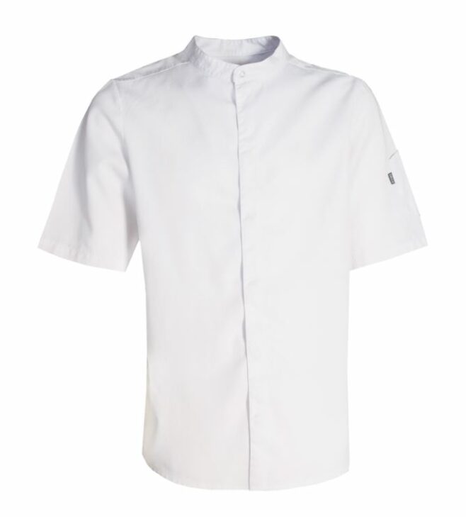 Minimalistisk kokkejakke med korte ærmer og underspillet coolness.