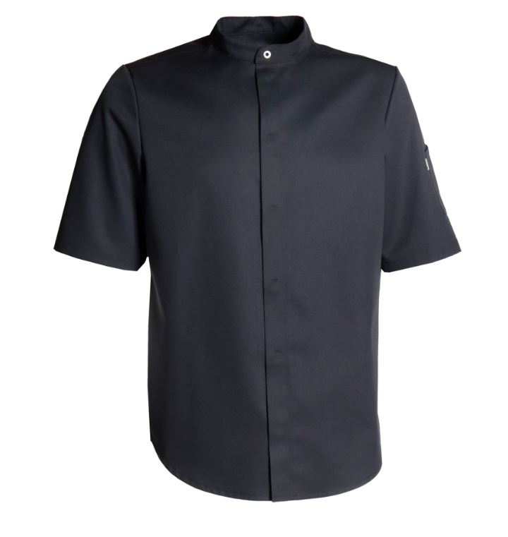 Minimalistisk kokkejakke med korte ærmer og underspillet coolness.