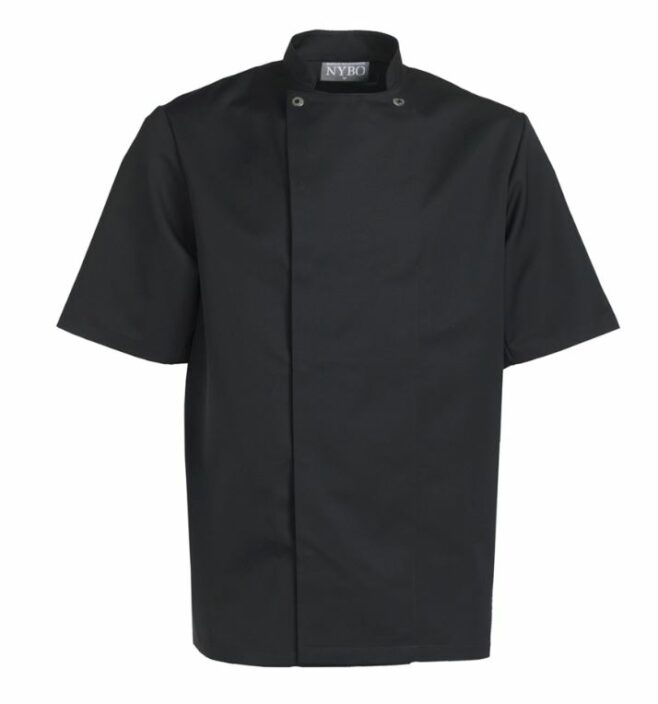 En klassisk dobbelttradet kokkejakke med korte ærmer.