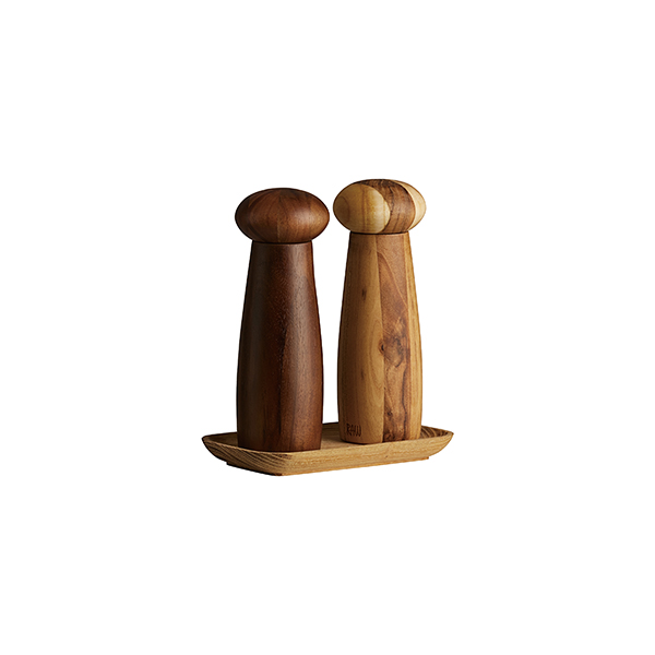 RAW salt- og peberkværnsættet er fremstillet i teaktræ, hvor der er skabt en smuk formgivning med et skandavisk udtryk.