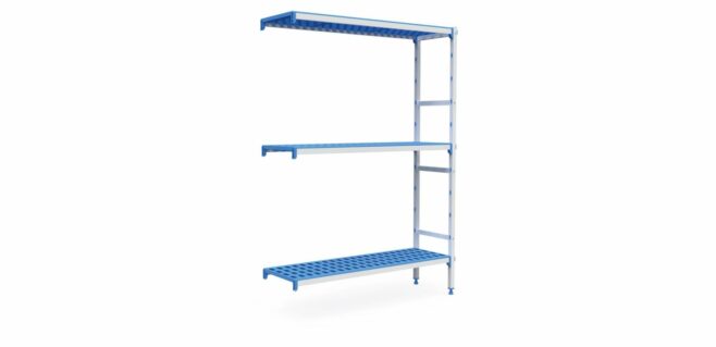 Dette sæt i tre niveauer leveres med hylder på 1450 x 555 mm, der passer perfekt i trange hjørner og giver uforlignelig stabilitet og pålidelighed.