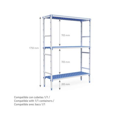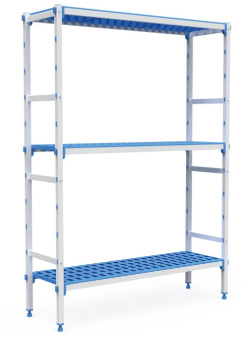 Fødevaregodkendte reoler fra Pujadas. Reolsystemet samlet nemt uden brug af værktøj.
