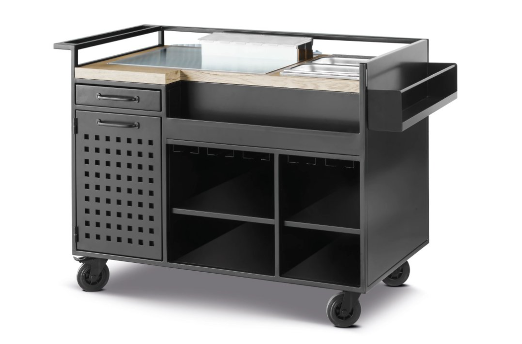 Cocktailvogn med arbejdsmodul i rustfrit stål, Pujadas