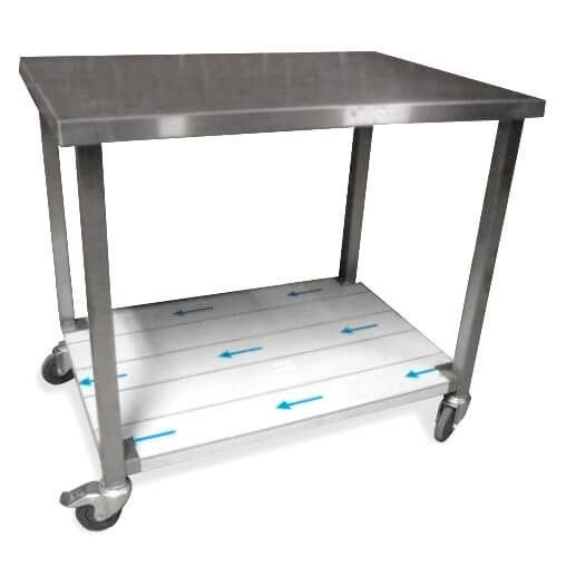 Rullebord i stål med underhylde, mål: 1000 x 700 x ca. 900 mm
