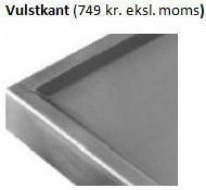 Det er valgfrit om der ønskes bagkant (60 mm) på varen. Om der er bagkant eller ej påvirker ikke prisen.