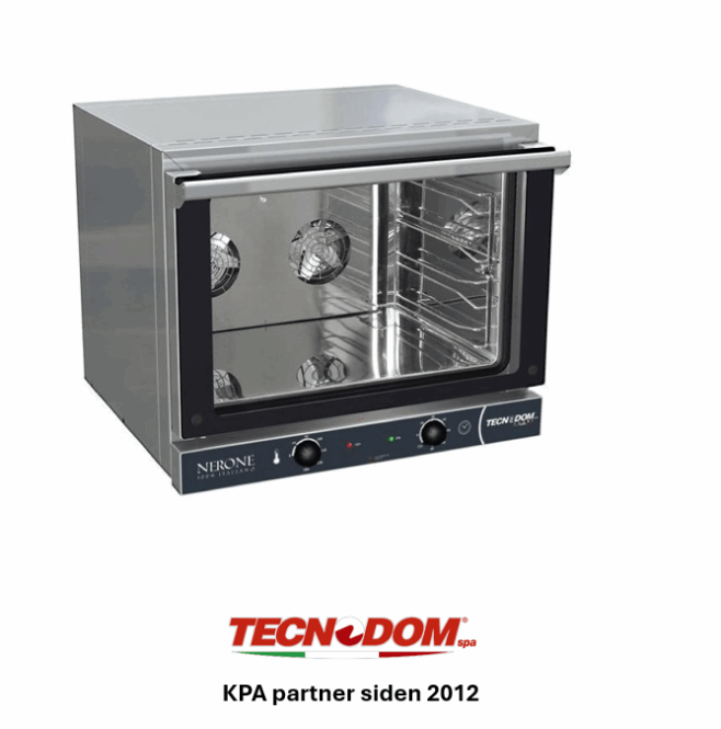 Tecnodom nerone er vores aller mest solgte ”industriovn”, én model som vi sælger flere 100 af hver eneste år. Ovnen er nemlig til 1/1 gn bakker, som er det de store og langt dyrere industriovne også benytter. Rigtig mange køber den som back-up ovn, ekstra kapacitet, event-ovn der kan tages med til arrangementer eller bare som en primær ovn til et sted der skal servere lunt bagværk.